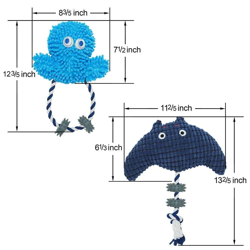 Each toy is equipped with built-in squeakers that make playtime even more exciting, perfect for toss-and-fetch games. The jellyfish and manta ray are not just fun to play with, they also promote active chewing, helping to burn extra calories and keep your dog’s dental health in check with their unique dental brushing sticks.