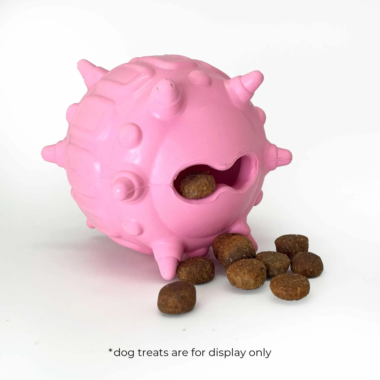 Don’t miss out on the chance to enhance your pet’s playtime. Order your 3 1/4″ Natural Rubber Dog Chew Toy and Treat Dispenser Spiky Ball today!