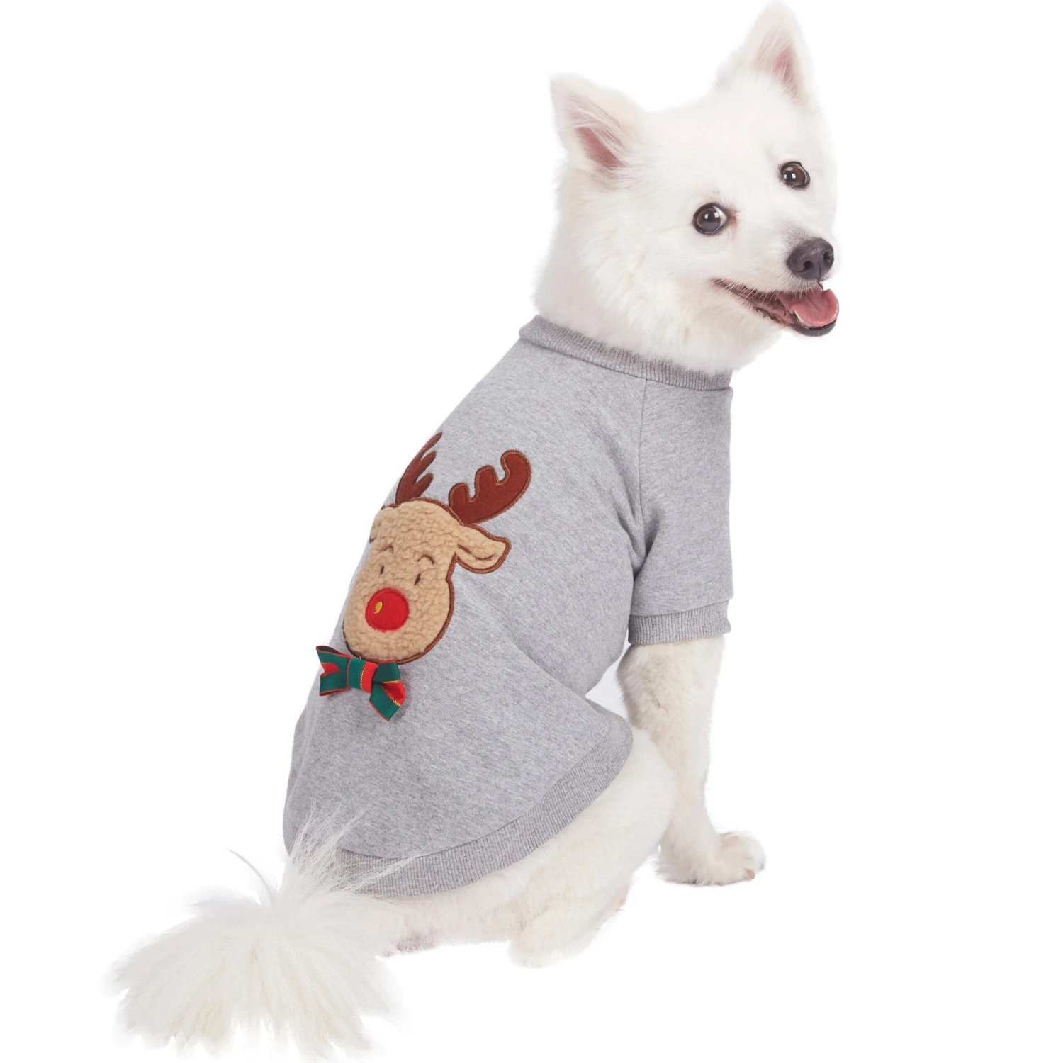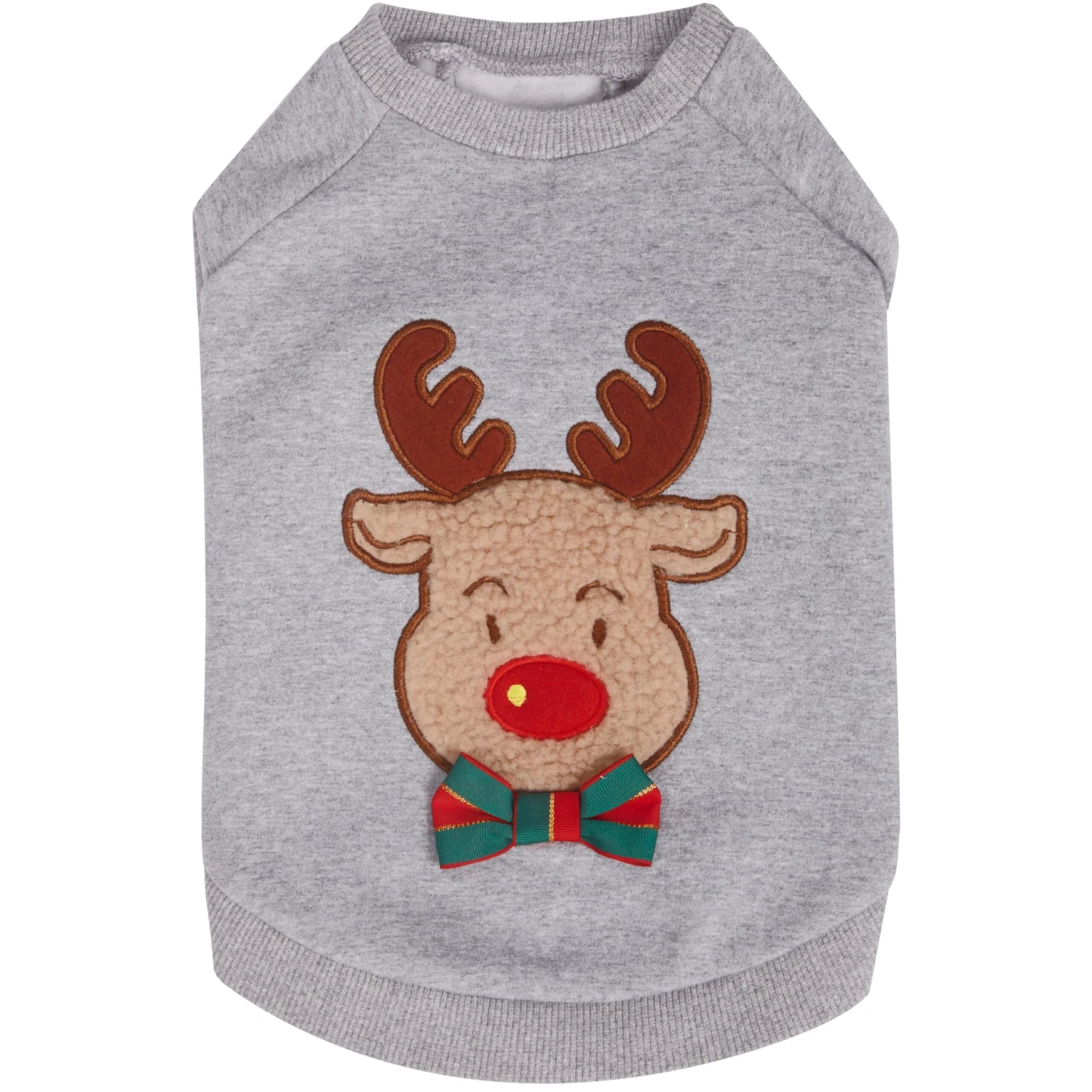 Embellished with an adorable Christmas reindeer and a charming bowtie, this sweatshirt beautifully captures the essence of the season. Its expertly tailored neckline, hem, and cuffs make it easy to put on and take off, ensuring a hassle-free experience for you and your pet.