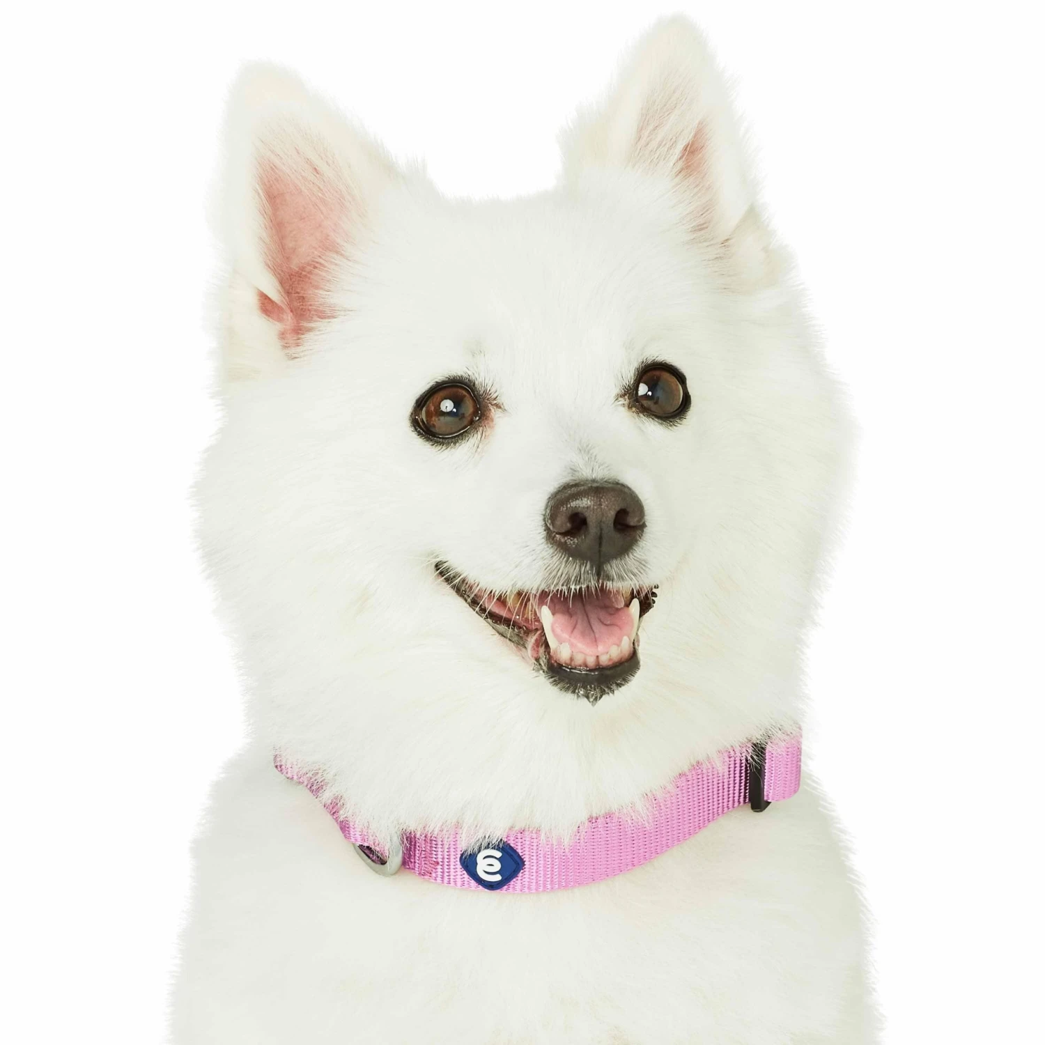 Designed with high-density nylon webbing, this durable collar is made to withstand the daily adventures of your furry friend. The collar features: