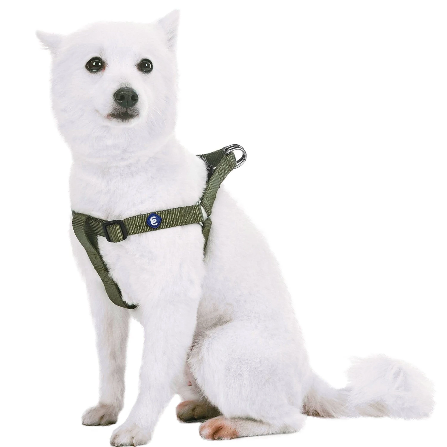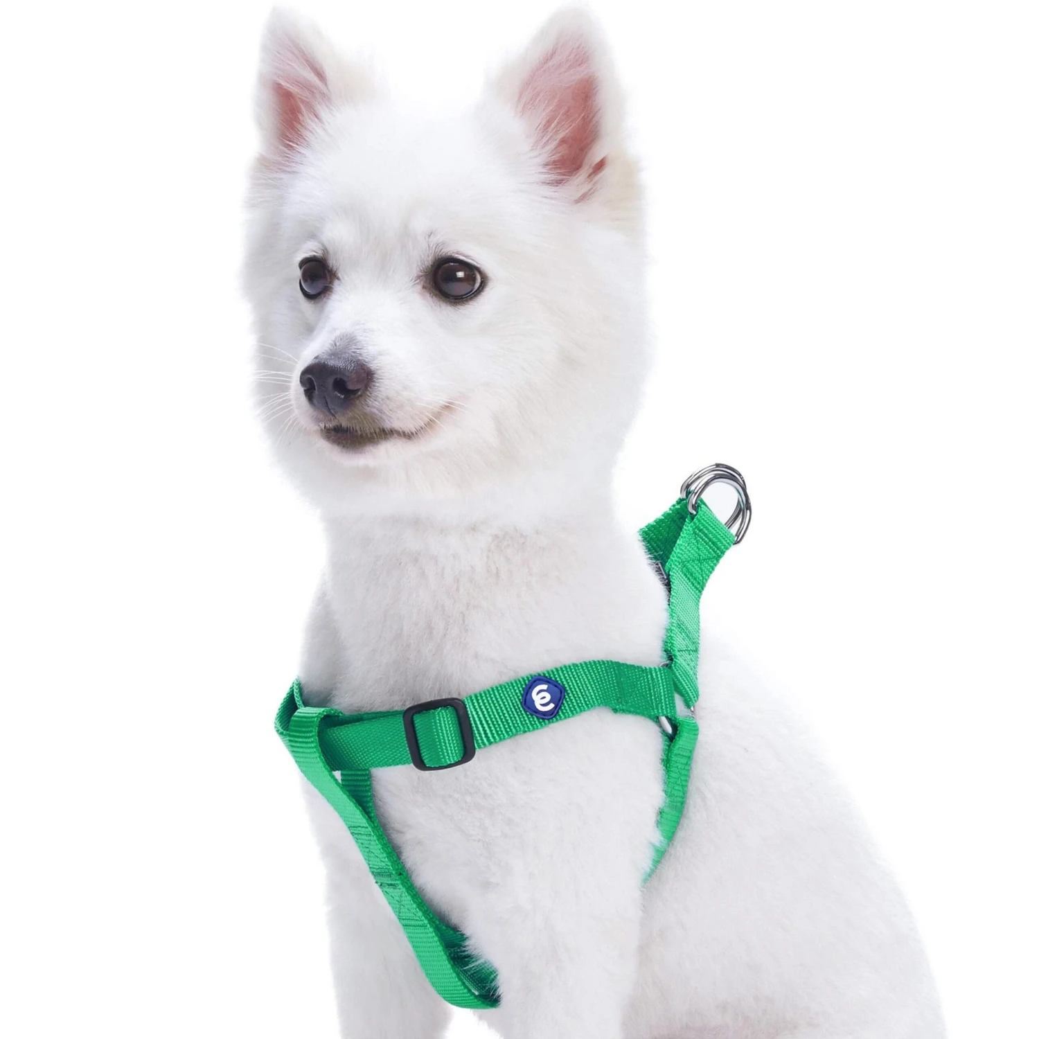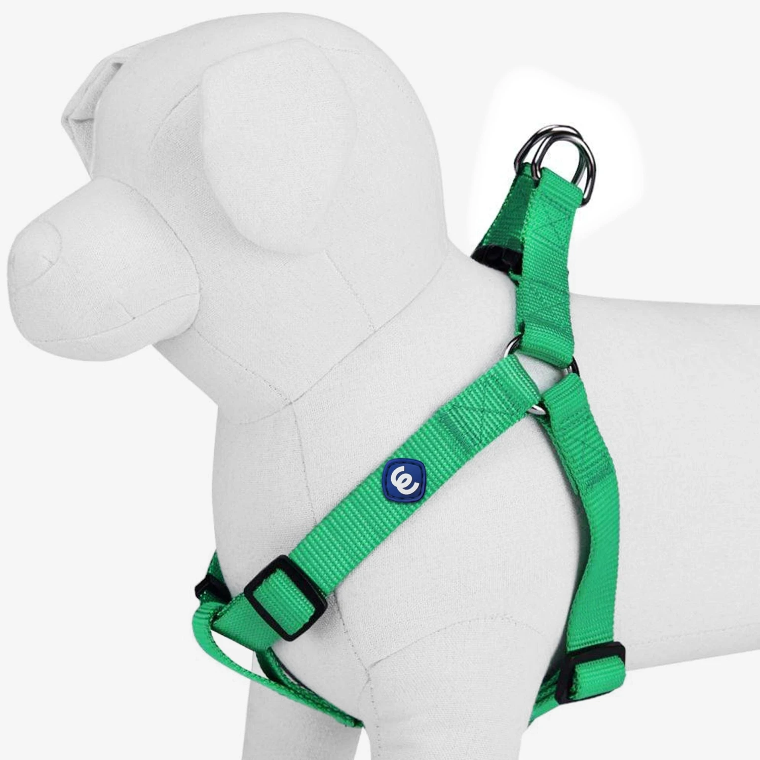 Introducing the Classic Solid Color Adjustable Dog Harness, Green from Essentials by Blueberry Pet—a perfect blend of style, comfort, and practicality for your beloved canine companion. This harness is expertly designed to provide optimal support and security, whether you’re heading out for a daily walk or embarking on an adventurous hike.