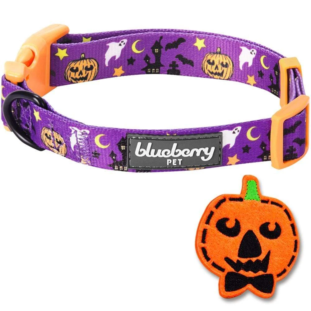Get your furry friend ready for Halloween with our vibrant Halloween Dog Collar with Pumpkin, Skull, Bats and Spiders Design. This collar is not just a fashion statement; it’s a celebration of the spirited season! Featuring a fun array of mini-pumpkins, spooky bats, and playful spiders, your pup will undoubtedly steal the show during your Halloween festivities.