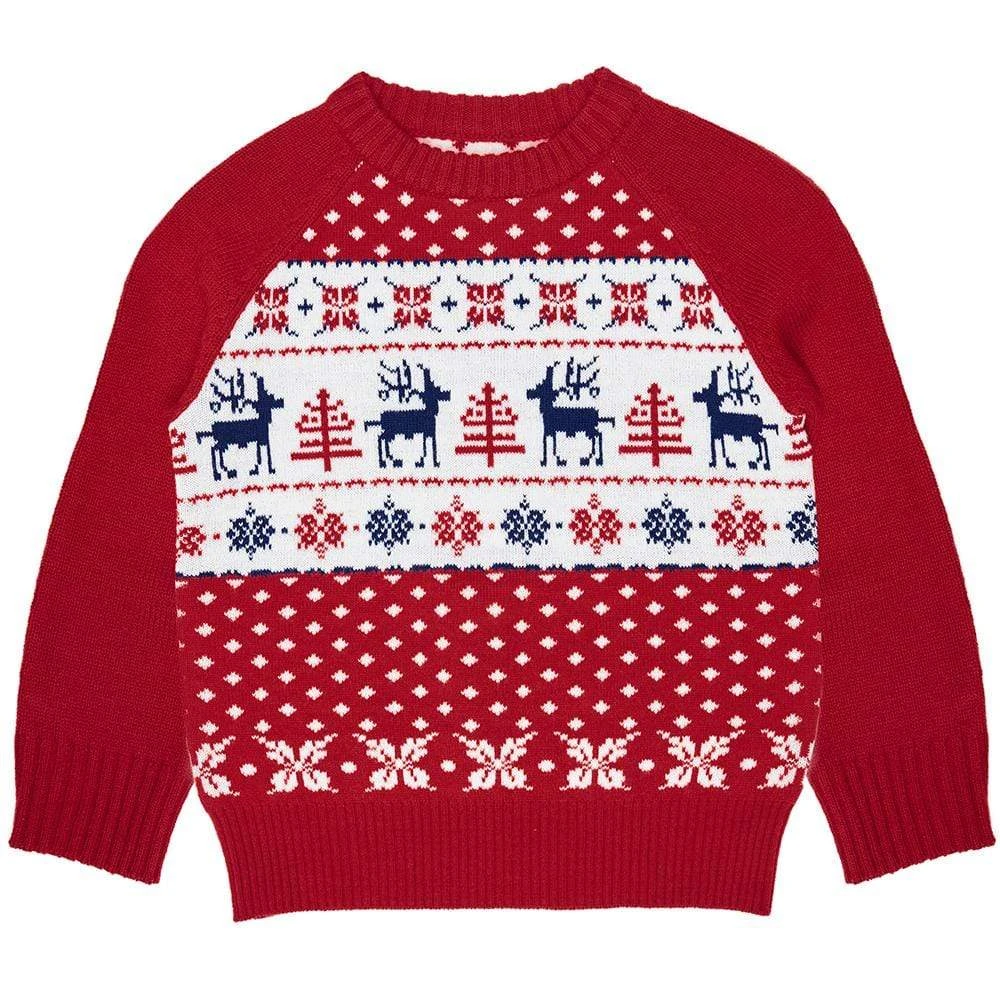 Crafted from 100% eco-friendly acrylic yarn, this sweater combines style with comfort. The soft texture is gentle against the skin, making it perfect for cozy gatherings. The classic color palette of red, blue, and white enhances its festive charm, ensuring your family stands out at any holiday event.