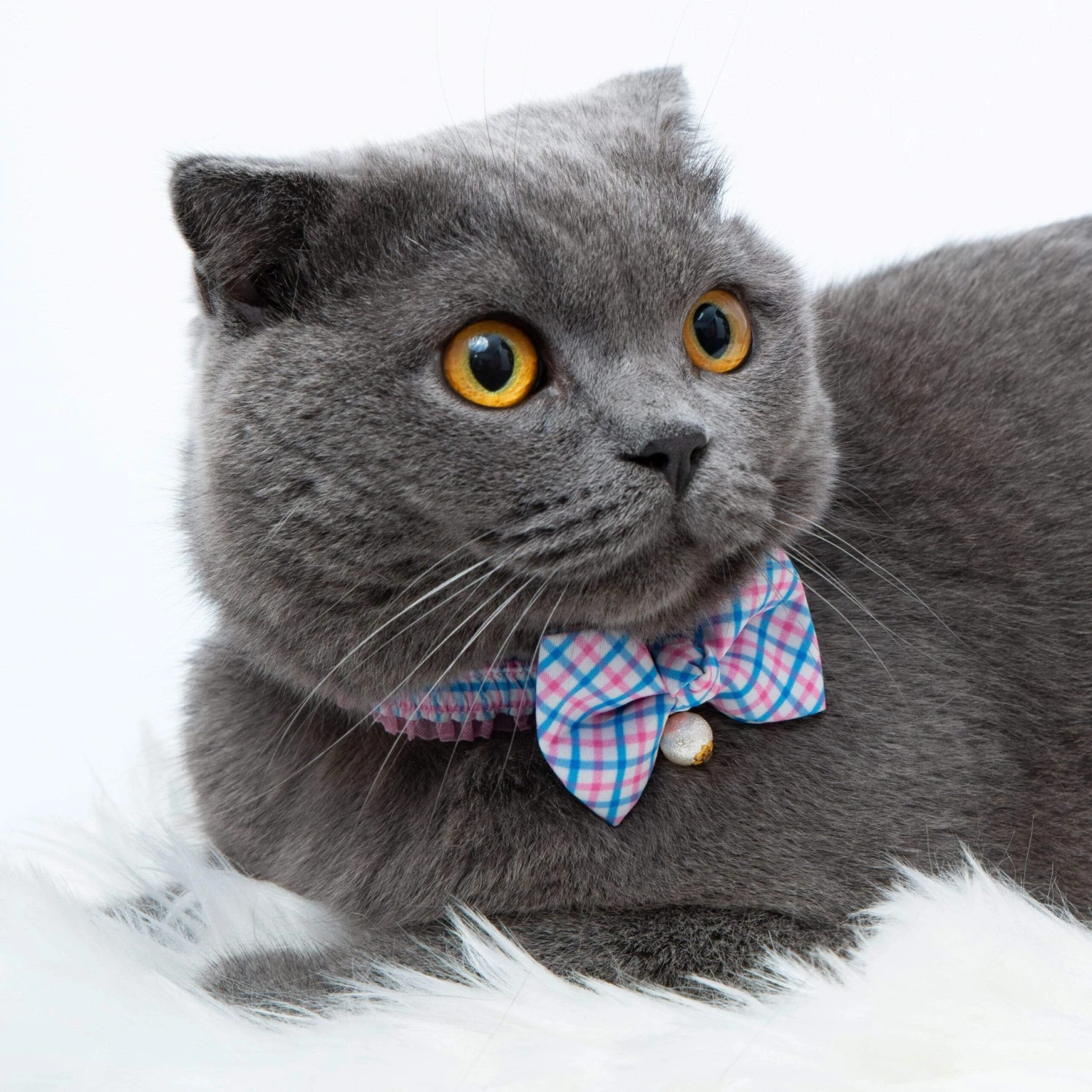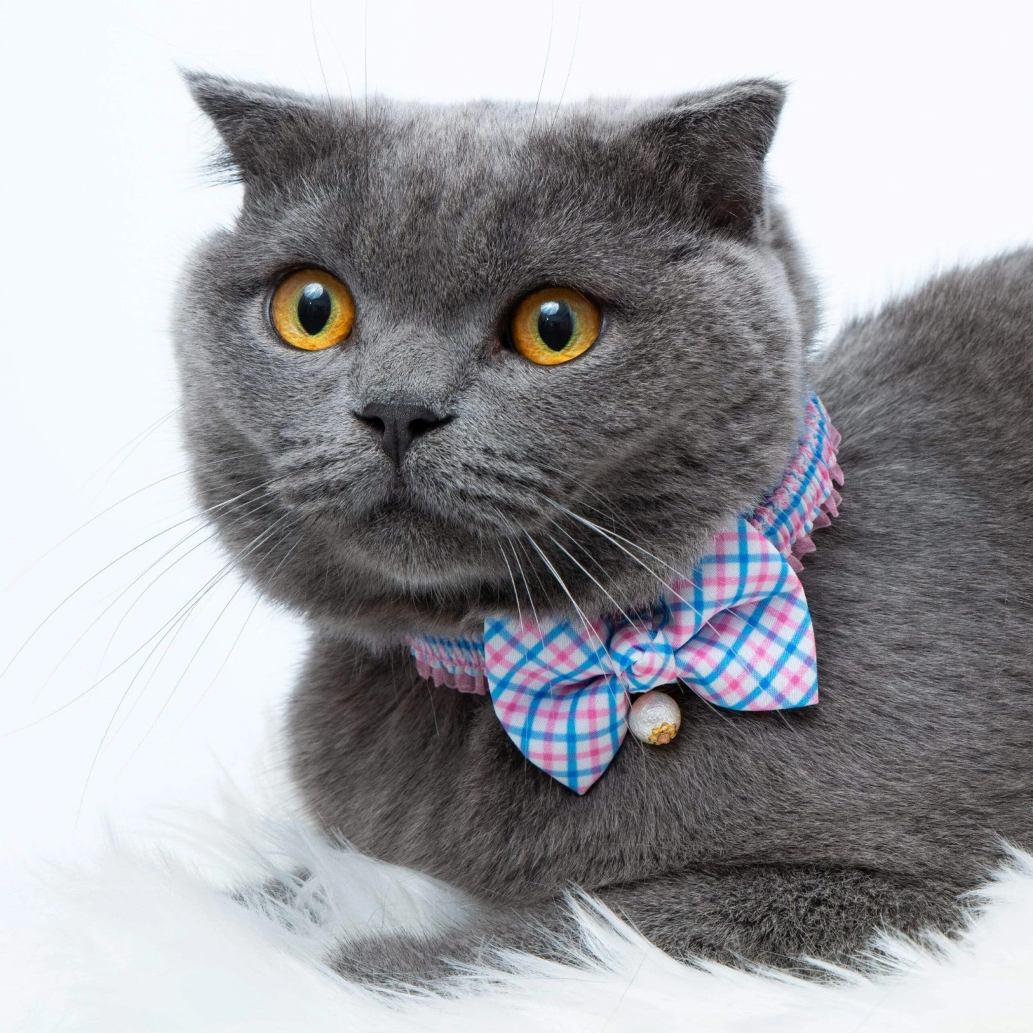 Plaid Bowtie Cat Collar With Pearl For Stylish Felines
