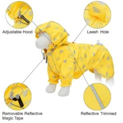 Waterproof Sunflower Yellow Reflective Dog Raincoat With 2 Legs