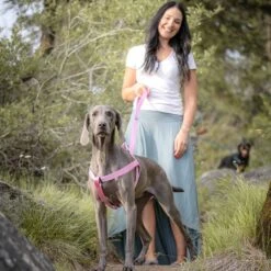 Nylon Dog Rope Leash With Neoprene Handle For Girl Boy, 4ft Blue Pink