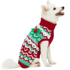 Christmas Reindeer Zigzag Chevron Dog Sweater With Holly Decor
