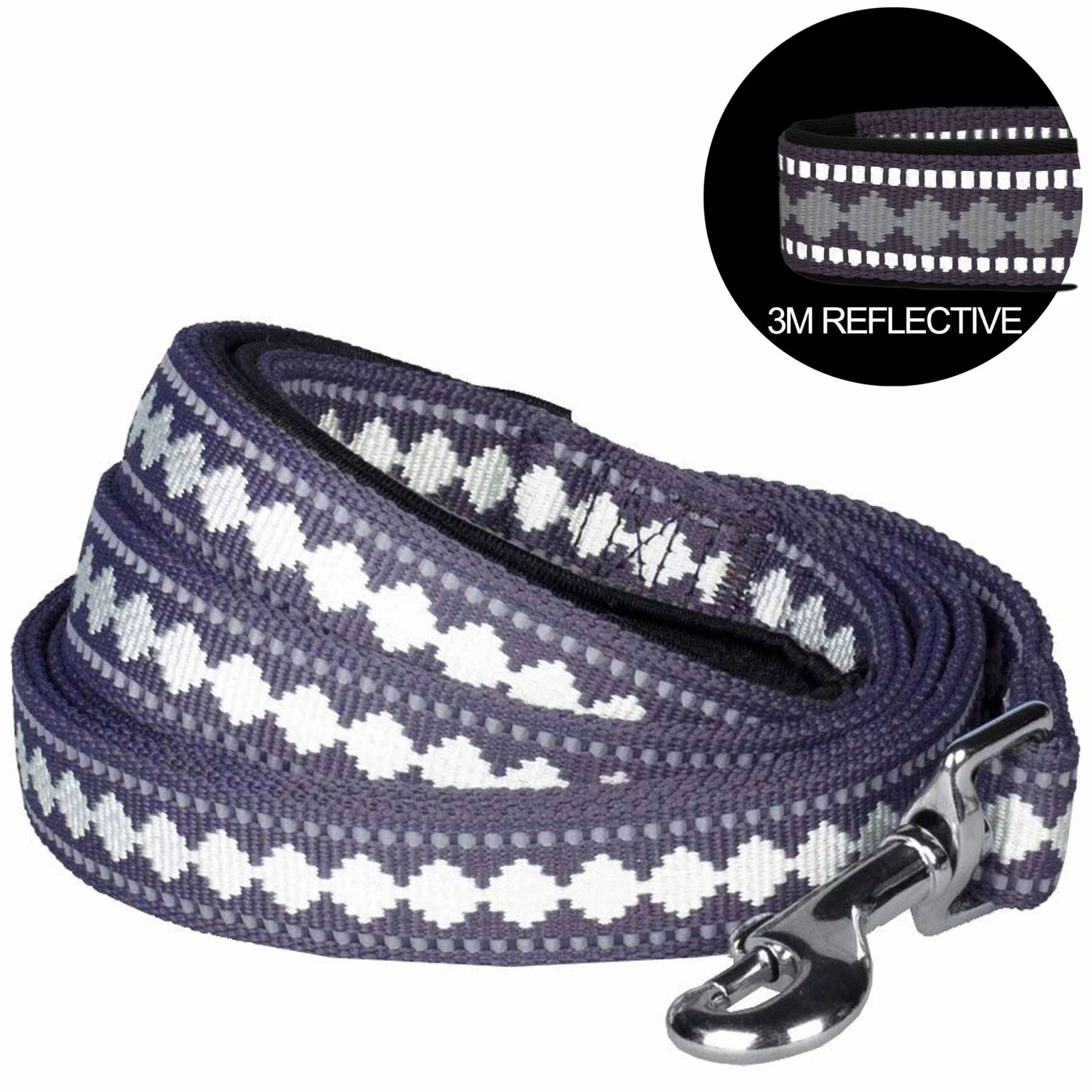 Ensure your furry friend stays safe and stylish with the Soft 3M Reflective Jacquard Dog Leash with Padded Handle. Designed for nighttime walks, this leash enhances visibility, allowing your dog to be seen by oncoming vehicles and pedestrians. The 3M reflective threads integrated into the durable polyester webbing reflect light, providing peace of mind during evening strolls.