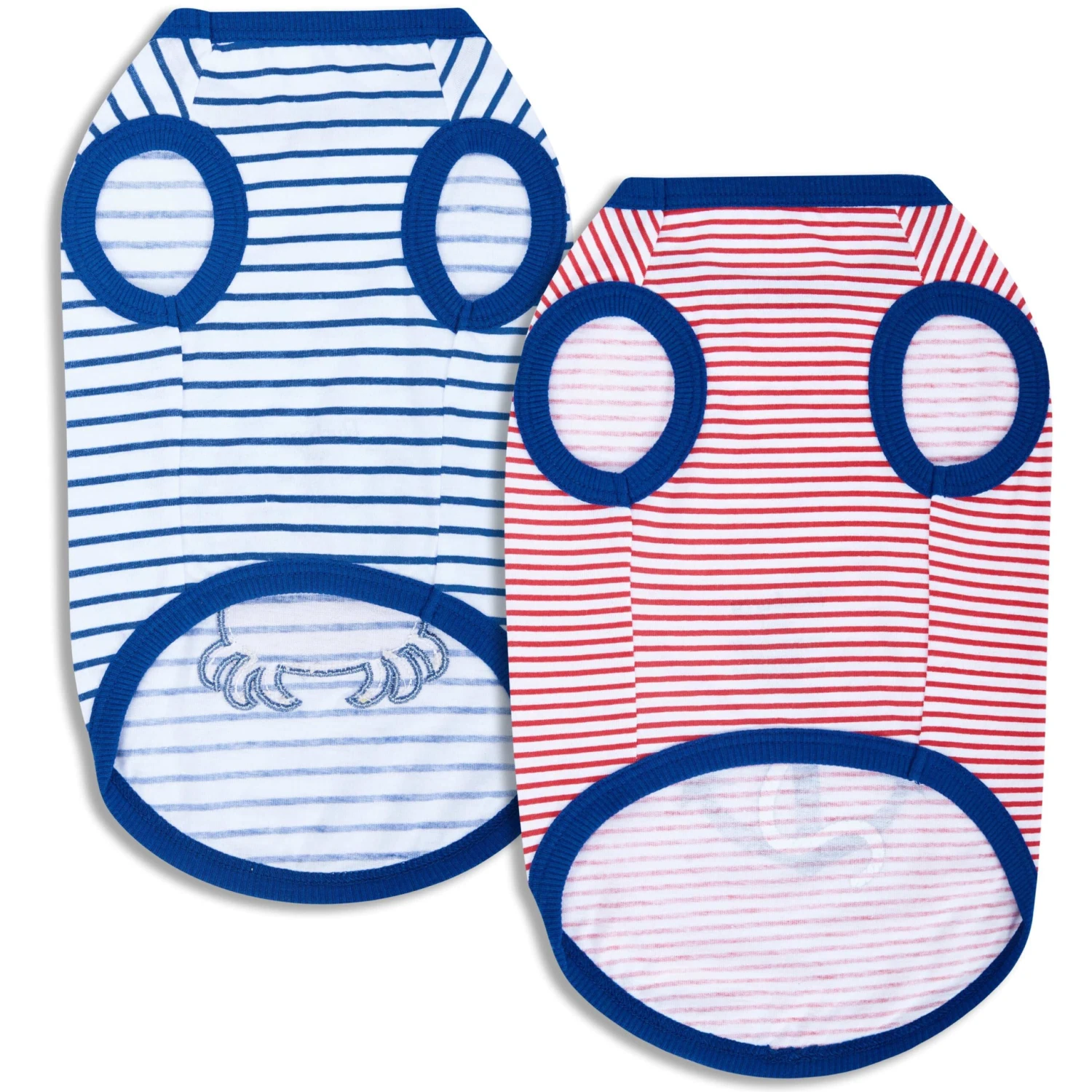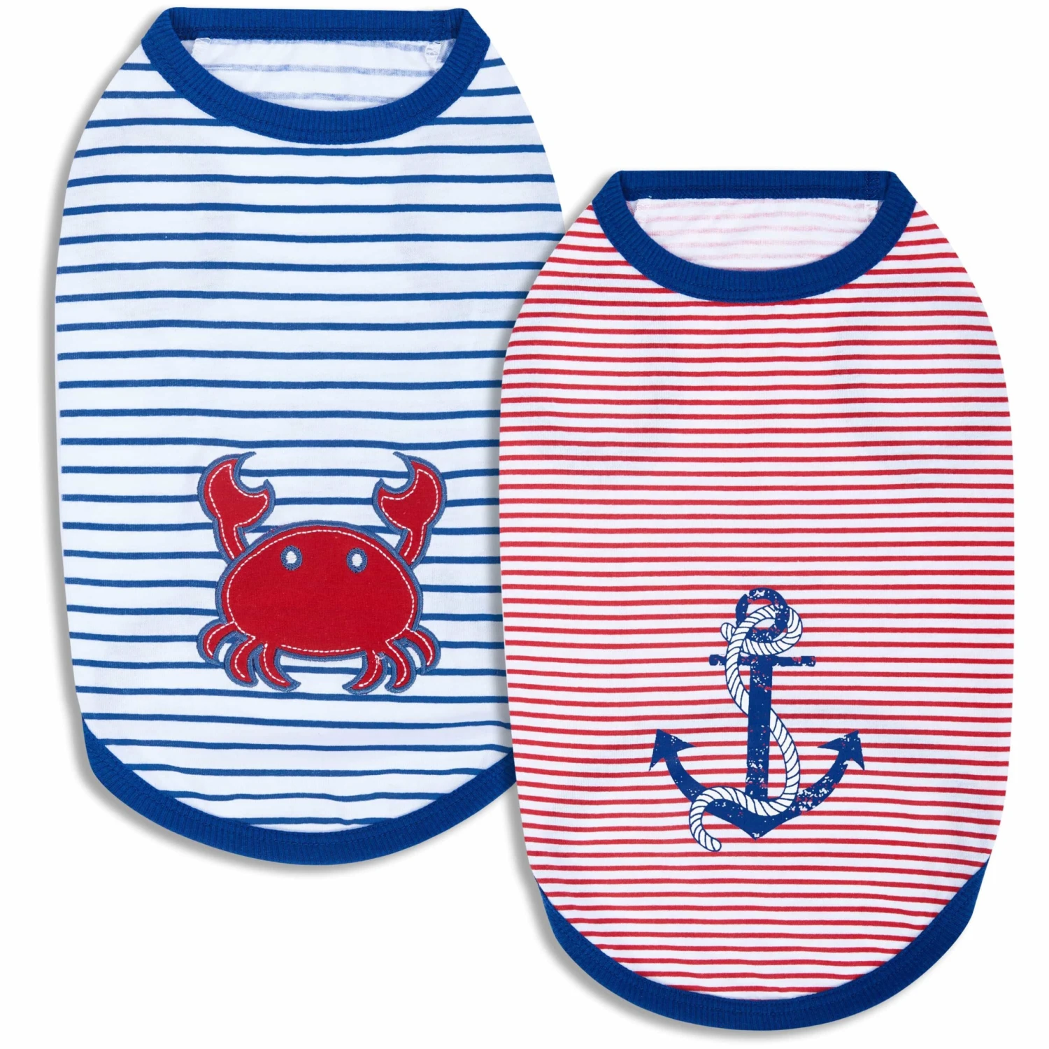 - Adorable Designs: The pack includes a playful blue striped t-shirt adorned with a cheerful crab design, and a vibrant red striped option featuring a trendy anchor motif, perfect for adding a nautical flair to your dog’s wardrobe.