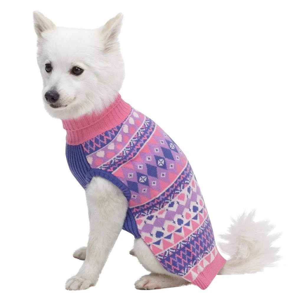 Wrap your furry friend in warmth and style with the Winter Bloom Designer Dog Sweater for Stylish Pets. Meticulously crafted for those chilly fall and winter days, this sweater offers the perfect blend of comfort and fashion. Your pup will not only stay warm but will also turn heads with its vibrant design featuring delightful patterns of snowflakes, diamonds, and arrows.