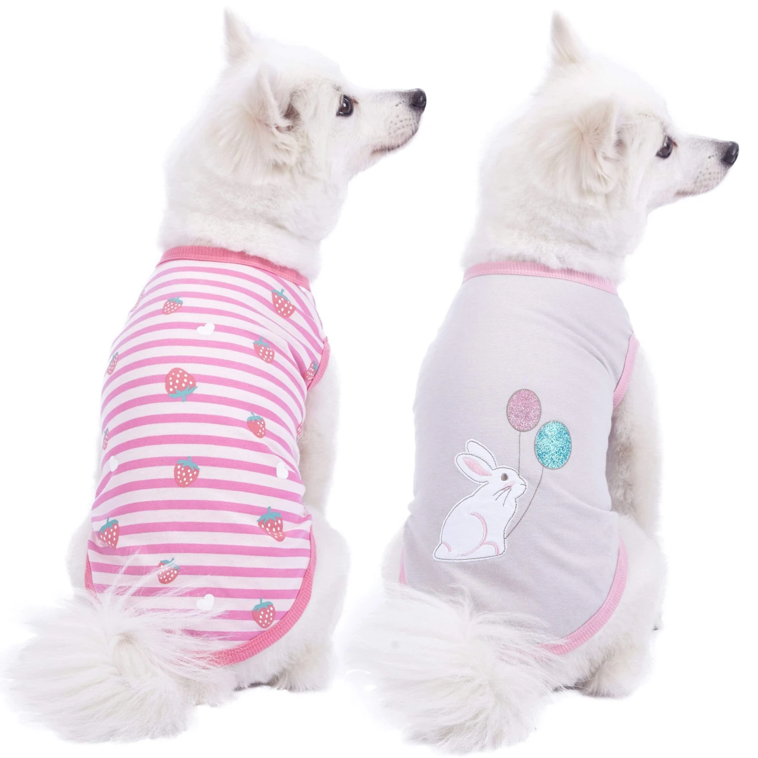 Embrace the essence of spring with our Wonderland Dog T-Shirts, 2 Pack for Spring Adventures! These enchanting t-shirts are designed to bring joy and vibrancy to your dog’s wardrobe, featuring delightful patterns of bunnies, balloons, and strawberries that will make your furry friend the star of any outing.
